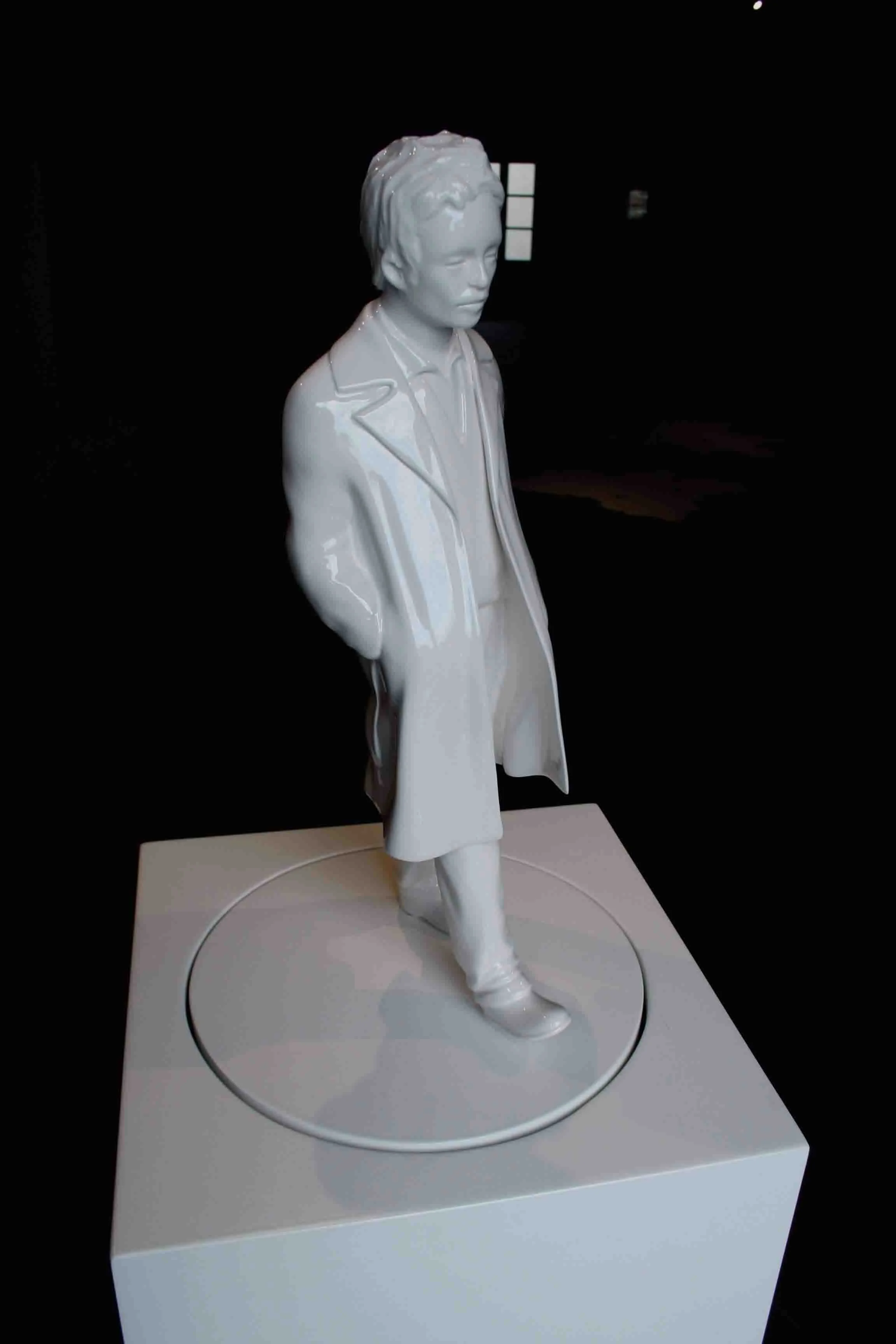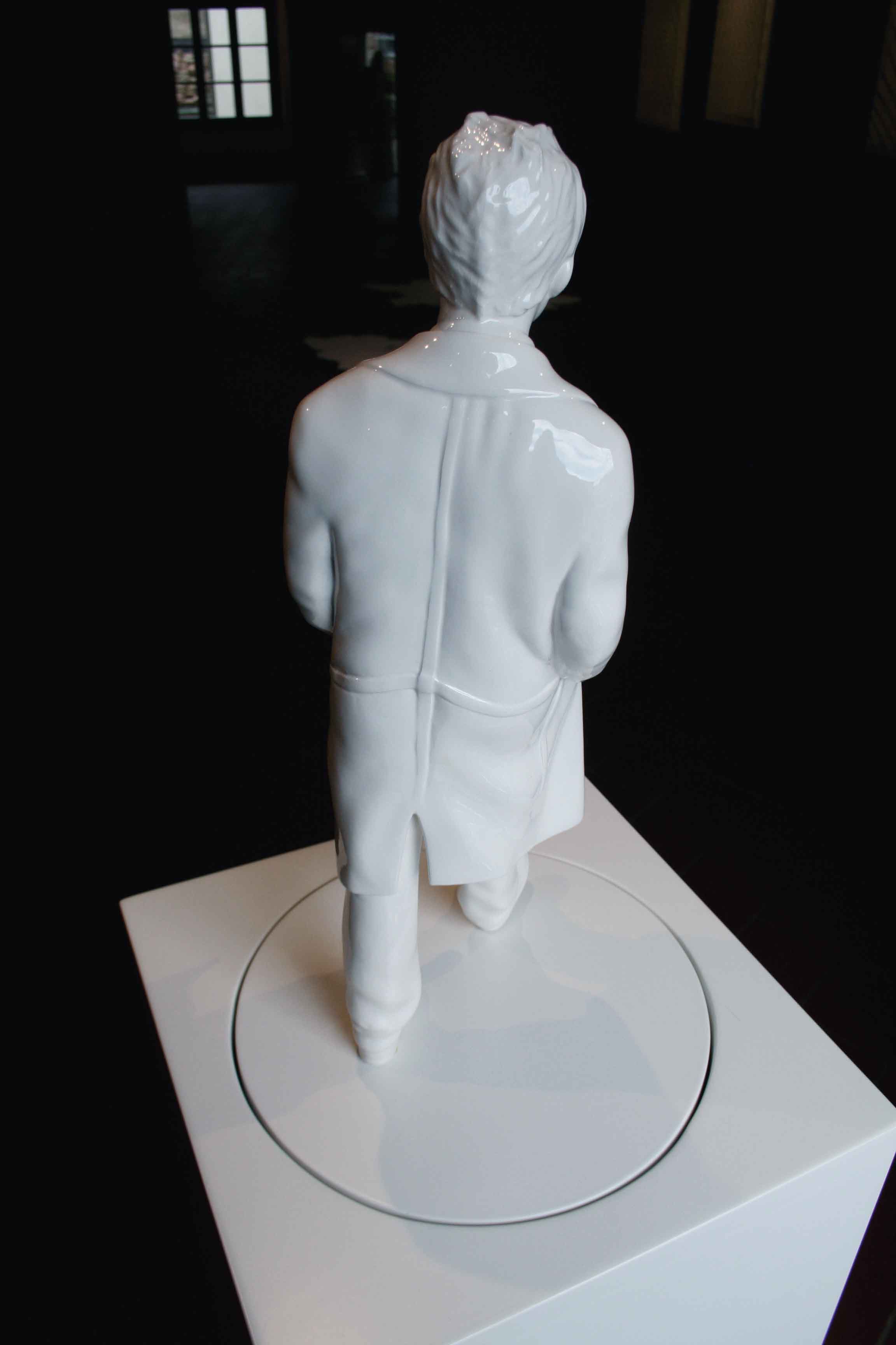 Simon di sicuro tra la folla, enamelled ceramic-white, wood stand, electric motor, 160x30x30 cm, ed: 4+1 AP, 2005